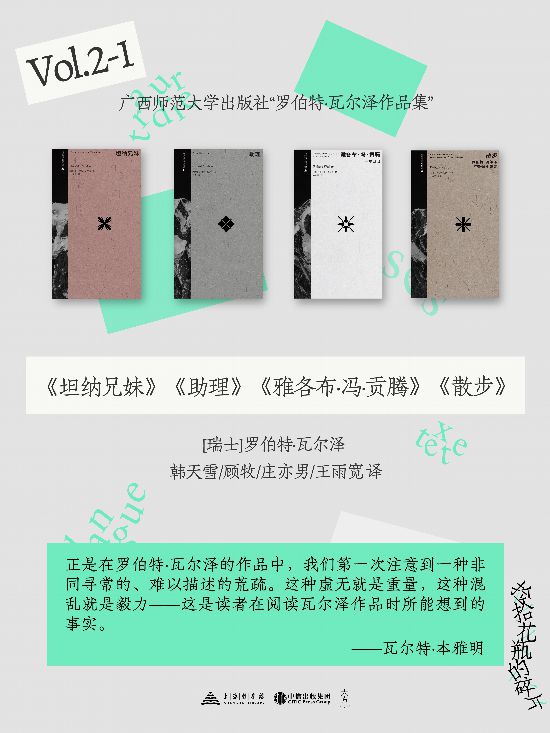 瓦尔泽在德语文学中有着至关重要的地位,他被认为与卡夫卡和穆齐尔齐名,是现代德语文学的奠基人,但他在中文世界的引介一直不足。直到去年下半年,有四家出版社和出版公司先后推出了他的几部重要作品的译本,让读者可以一窥这位作家的文字和精神。