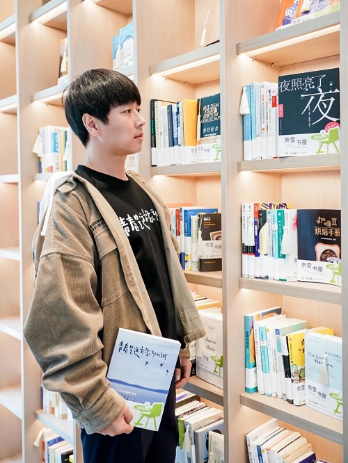一列绿皮火车旁,大大的包头耳机挂在脖子外宽宽大大的卫衣帽子下,原地站住不动的海葵,一直在低着头看手机等我。不知何时烫过的头发让蓬松的刘海将他的眼睛挡住几乎看不见。