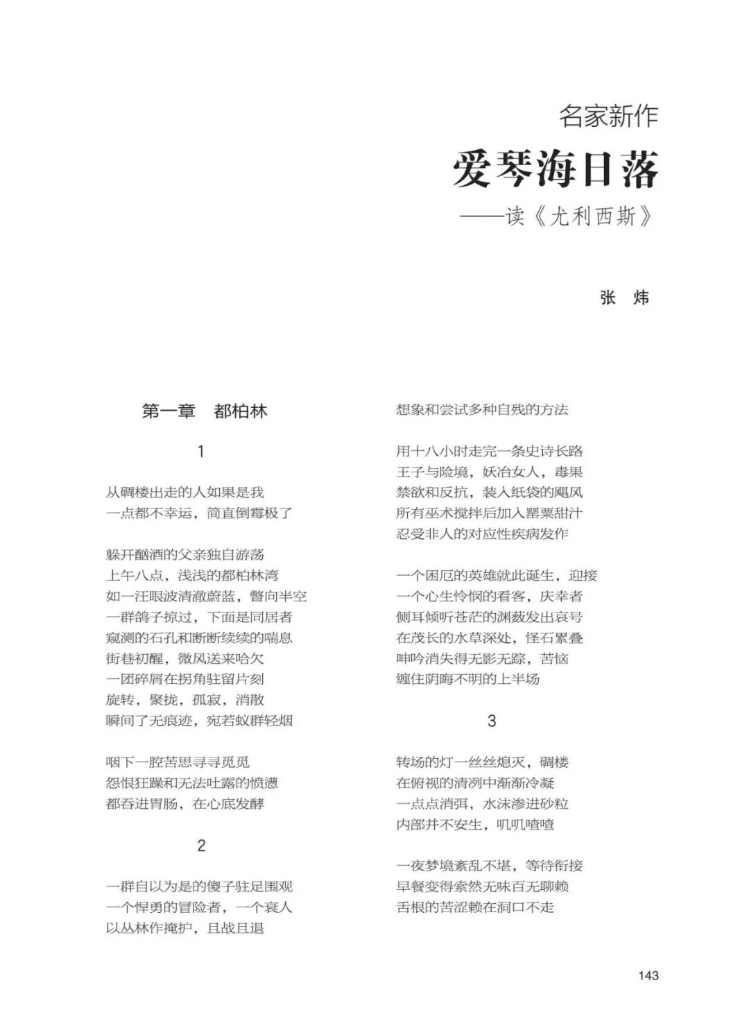 张杰:《爱琴海日落——读(尤利西斯〉》(以下简称《爱琴海日落》)有一种特殊的精神气质,阅读中波澜壮阔的微观历史、一日长于百年的感受扑面而来。这首长诗是否可以理解为您向詹姆斯·乔伊斯《尤利西斯》和荷马《奥德赛》致敬之作?