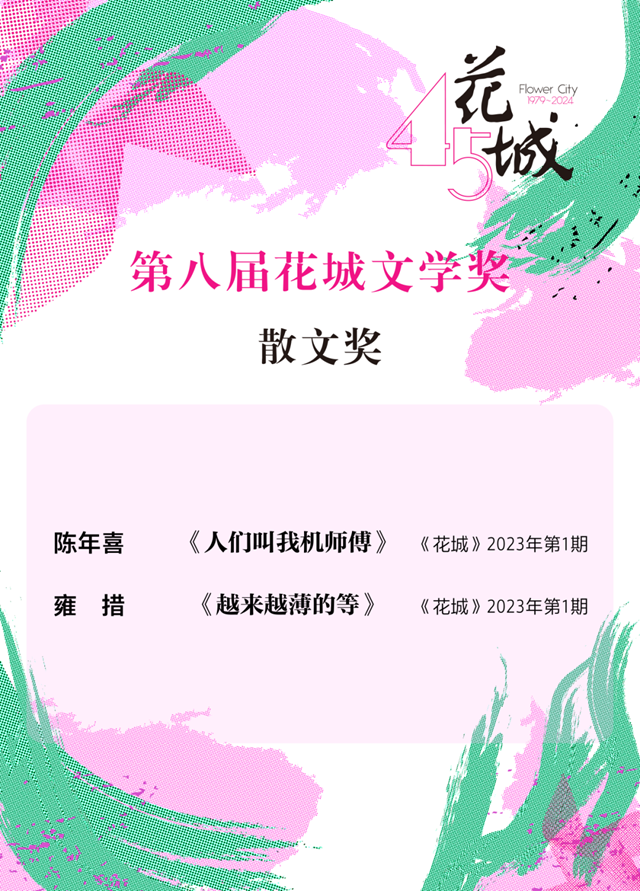 2024年,适逢《花城》《随笔》杂志创刊45周年、在纸间跳跃的回响中,由花城出版社、花城文学院、《花城》杂志与《随笔》杂志主办的第八届花城文学奖,为2024年南国书香节的重要活动之一。