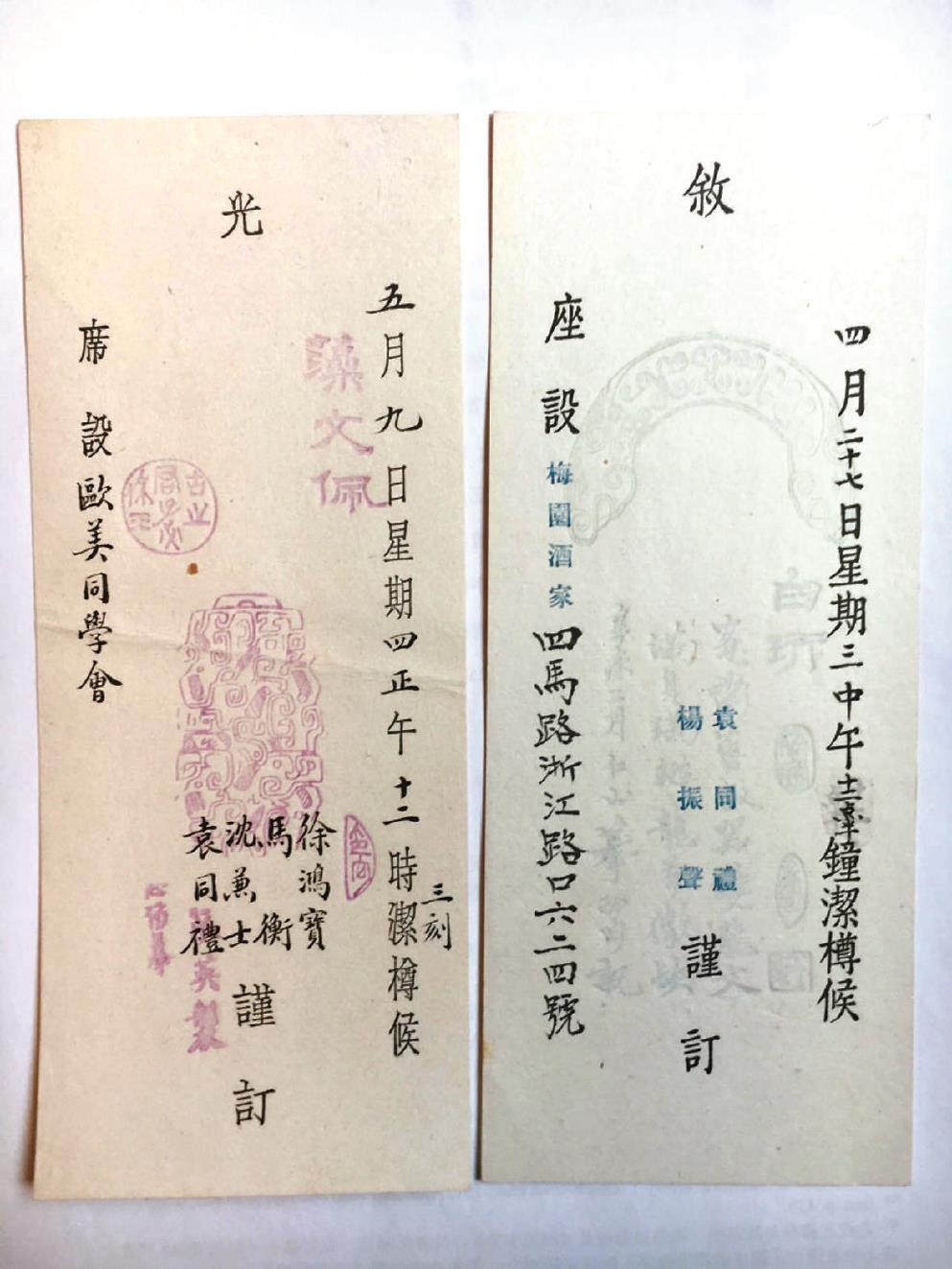 袁同礼为伯希和设宴之请柬,时间分别为1935年3月27日(请柬误为4月)与5月9日