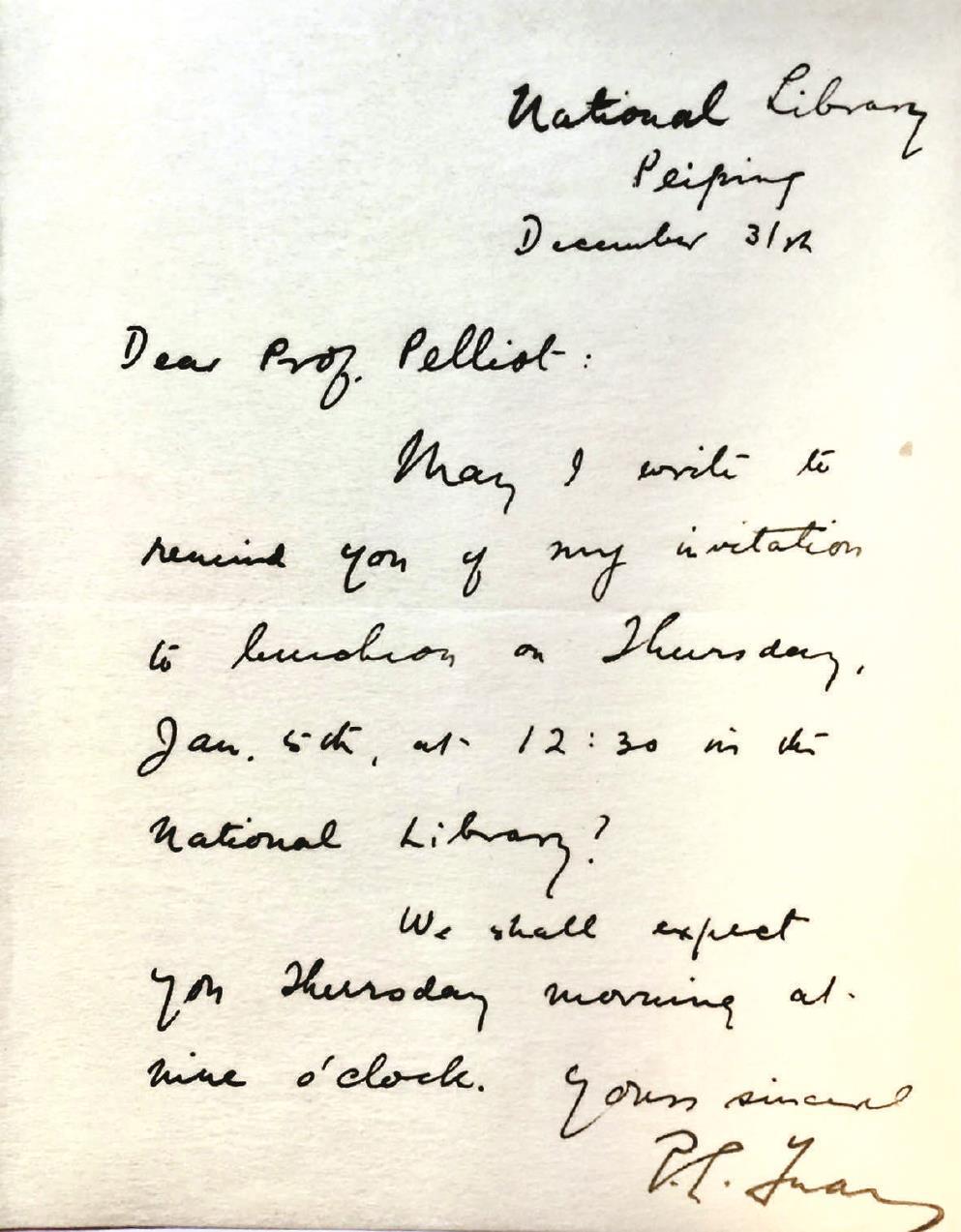 作为图书馆的负责人,袁同礼特别关注充实馆藏,为此与国际学人多方交流,而伯希和正是与他互动颇多的人士之一。抗战期间,先生和伯希和的通信较少,存留的信中可见先生控诉日本帝国主义对中国图书事业的摧残,呼吁法国对中国图书馆的支持。