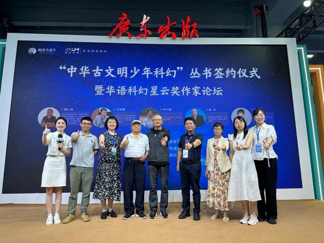 8月17日, 2024南国书香节主会场还举办了“中华古文明少年科幻”丛书签约仪式暨华语科幻星云奖作家论坛。华语科幻星云奖与少儿科幻星云奖创始人董仁威,新世纪出版社社长陈少波、副总编辑秦文剑,少儿科幻作家赵华、马传思、尹代群、路航等与会。
