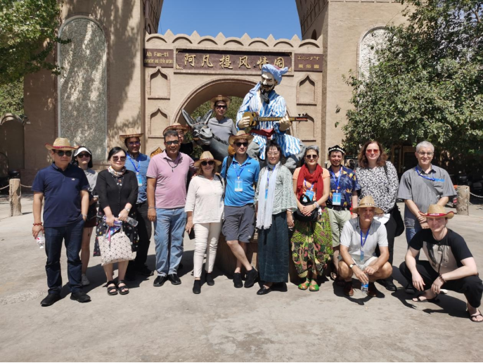 从古代丝绸之路到如今的“一带一路”,新疆作为人类文明汇聚之地,拥有绝佳的自然景观与悠久的人文历史,难怪英国历史学家汤因比说,如果一个人有来生,我愿意出生在两千年前的龟兹(今新疆库车),那个多民族文化交汇的地方。在天高云淡、瓜果成熟的8月,空气中氤氲着丰收的香甜气息,各国汉学家、翻译家和凤凰彩票从新疆首府乌鲁木齐出发,途经昌吉回族自治州、吐鲁番市,到水草丰茂的伊犁哈萨克自治州,最后抵达中国最西部的喀什地区。大家仿佛将短短的8天时间过成了一个月的丰富程度,他们品味新疆人文历史,饱览新疆美景,品尝新疆美食,感受新疆人民的热情好客以及安居乐业、载歌载舞的幸福生活,各国翻译家和凤凰彩票彼此间畅通无阻的交流,达成一个个合作意向,成就一段段真挚友谊,也留下一幕幕美好瞬间。