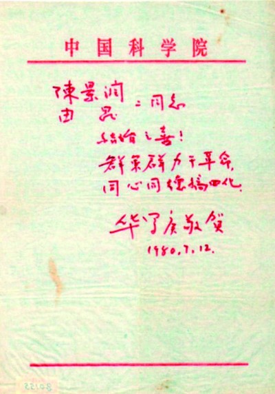 华罗庚为陈景润、由昆结婚写的贺词 中国国家博物馆藏