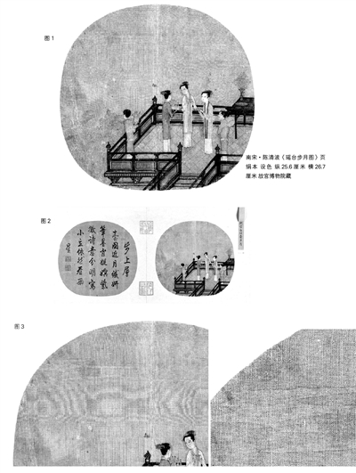实际上,画家就是画了半块月亮,而且,他非常巧妙地把这半块月亮放在了扇面的边缘,让团扇之边与半月之弦吻合。