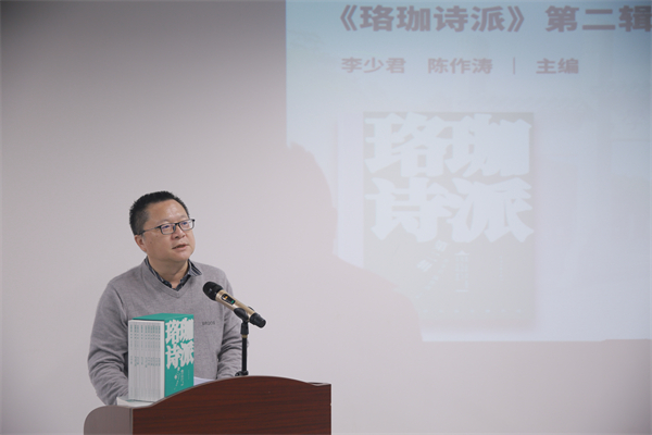 李少君在《珞珈诗派》第二辑首发式上。李少君,诗人、作家,出生于湖南湘乡,毕业于武汉大学新闻系,曾任《天涯》杂志主编,现任《诗刊》杂志社主编