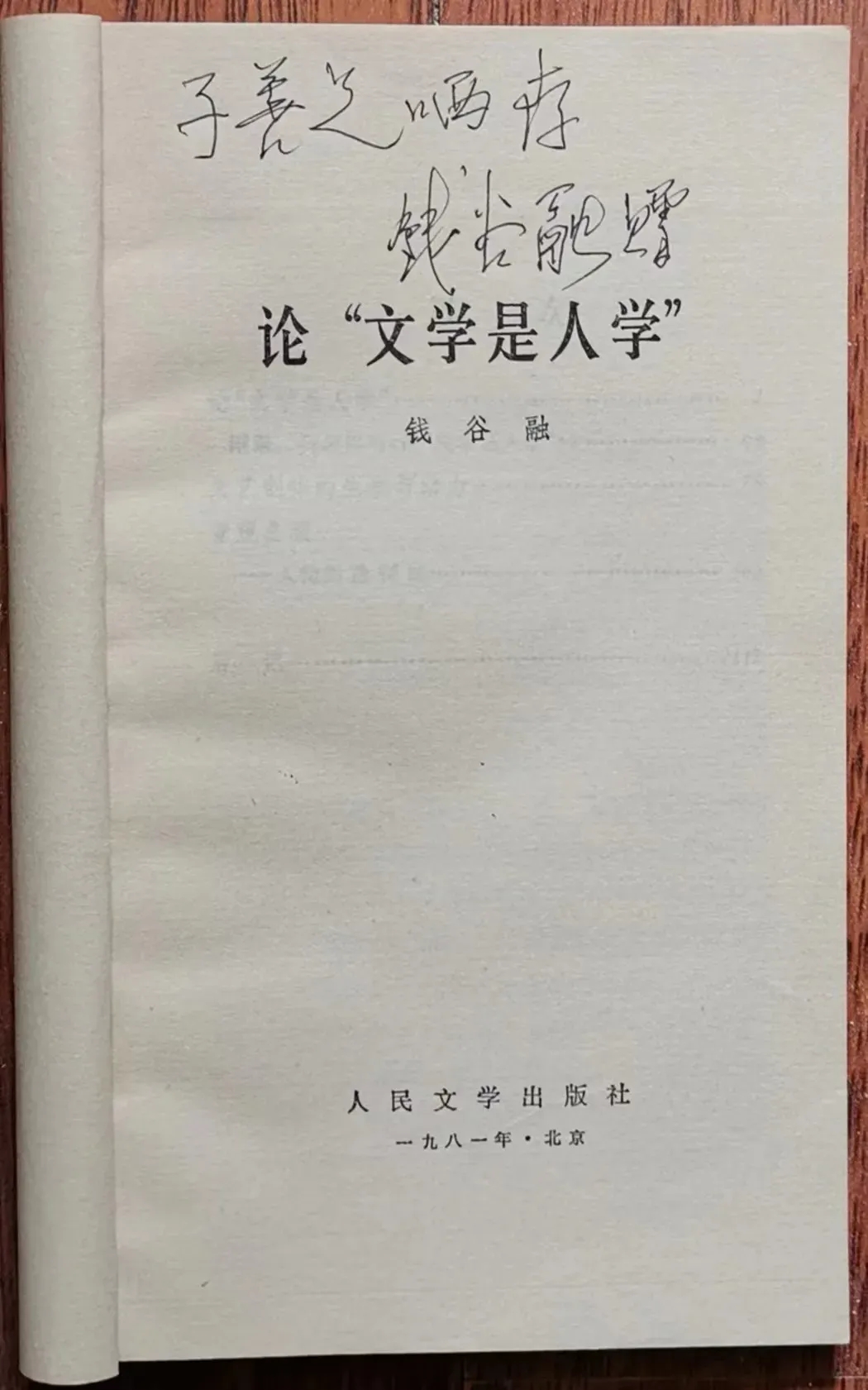 钱谷融先生在《论“文学是人学”》扉页上的题字