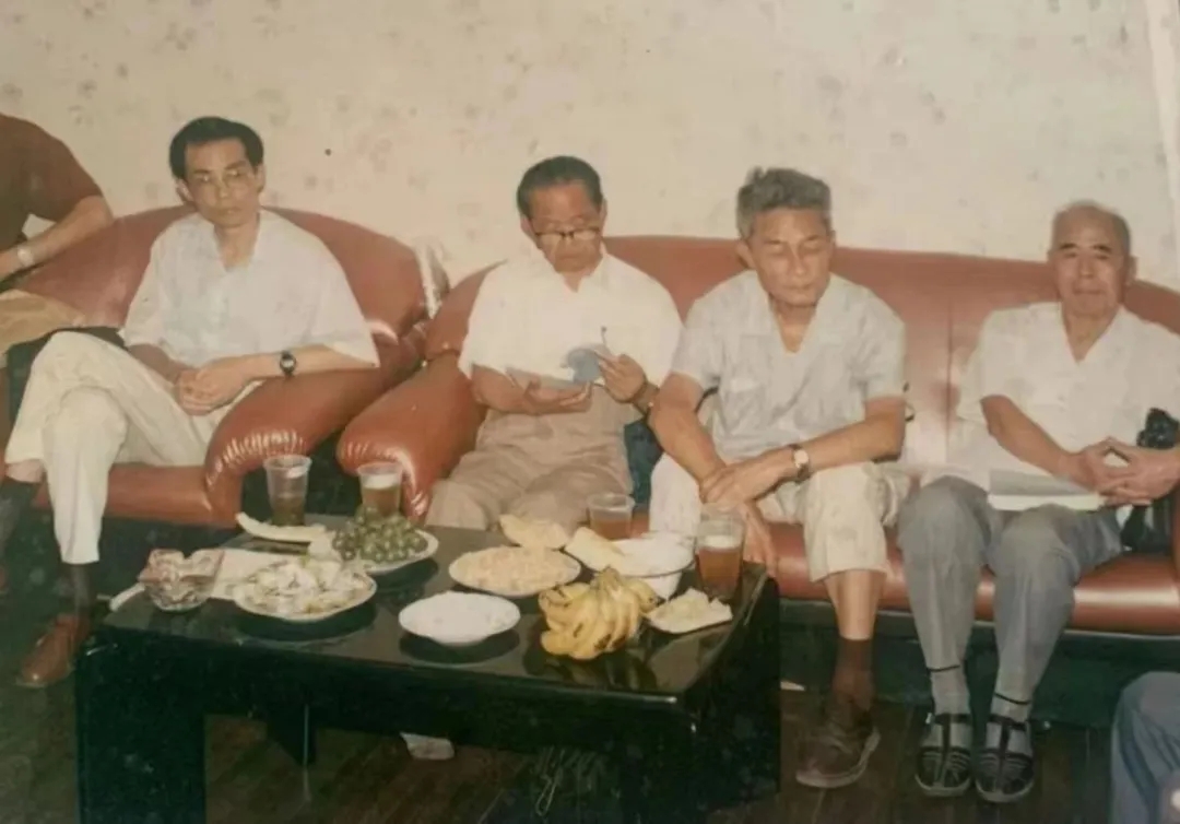 1993年,在《王礼锡诗文集》发布会上,左起:陈子善、冯英子、徐中玉、钱谷融