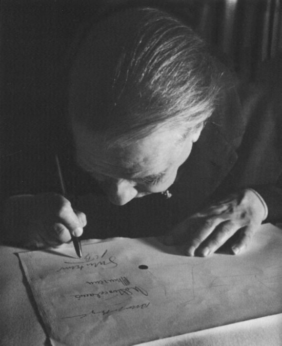 伏案书写的博尔赫斯