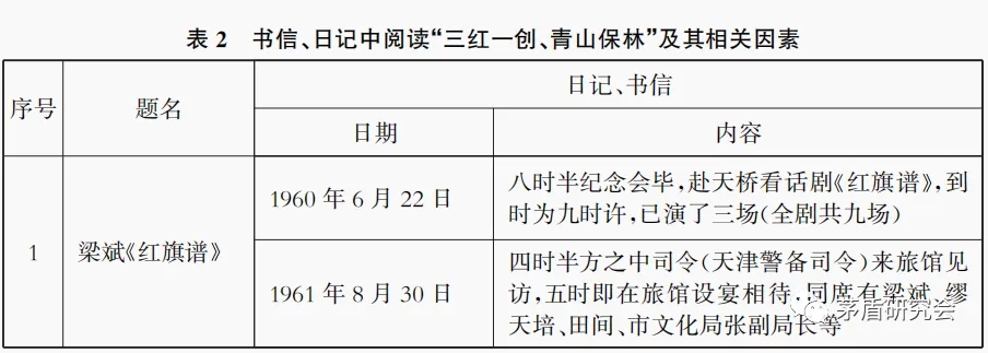 在日记中,茅盾观看了《红旗谱》话剧,以及电影《红岩》《红日》《林海雪原》,关于这些作品文本的阅读则淹没在了日记中“阅书”“阅书刊”之中。
