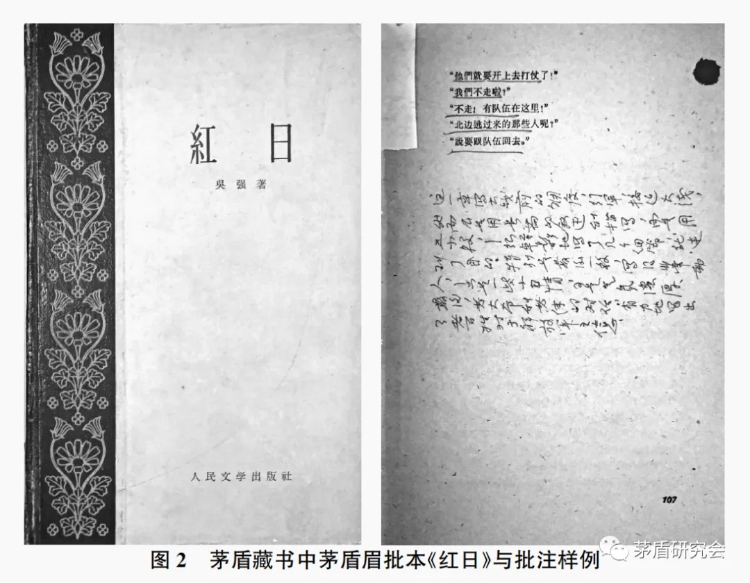 茅盾藏书中吴强的《红日》中的批注为初稿,在《茅盾全集》中未收录,系首次呈现,批注中有关观点内容细节在《谈“人情味”——读<共产主义的人情味>偶感》(《中国文论·九》,1960年4月笔记)提及一次,在《反映社会主义跃进时代,推动社会主义时代的跃进——1960年7月24日在中国文学艺术工作者第三次代表大会上的报告》三次提及,当均为展开论述,与书中批注内容情况相一致。