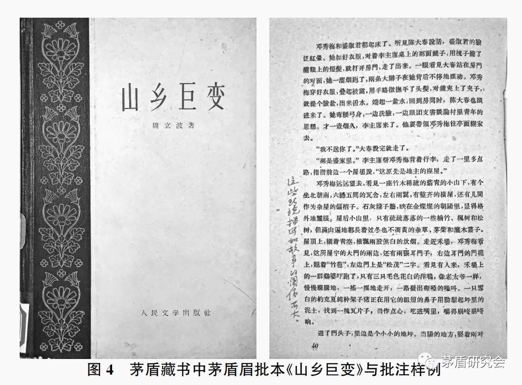 从表2中可见,柳青《创业史》、周立波《山乡巨变》在日记中有明确记录,其中在致朱棠(1973年12月11日)中“你需要的《创业史》及《母亲》找不到,想来你记错或者被人拿走了。我的孙儿的同学常来这间书房里找书,有时借了去也不说一声“,更是证实了茅盾藏书中《创业史》的一种可能去向。