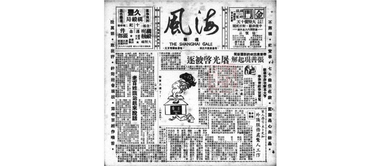 抗日战争结束后,上海书报市场涌现出一类形似正方形,规格为八开或十二开本的通俗读本,因其形制特别,既不像期刊又不似报纸,一时之间吸引了众多读者注意,被时人唤作“方型周报”。最早出现在市面上的“方型周报”是1945年11月17日发行的《海风》,一经推出即受到民众欢迎,获得了很好的市场反响。很快,上海掀起一股“方型周报潮”,效仿者不断涌现。1946年3月,《海晶》记者统计:“海派周刊,现在社会局登记者,总计有六十种,在筹备者尚有不少。”(不勤记者:《漏网新闻》,《海晶》1946年第6期,第2页)1946年5月,《申报》记者调查,“此类刊物,到目前为止,竟已有七十三种”。(《小型报面临危机》,《申报》,1945年5月10日,第4版)他具象地描绘方型周报大受欢迎的盛况:“看到电车中,火车上,大城,小镇,大多人手一册,就可想见其流传之广,影响之大。”他更注意到:“小报代周刊的接连问世,声势之盛,几乎窒息了其他一切出版物,使各种书报杂志的销路,大受影响,到如今报摊上多为这类刊物所占。”两个月后,署名“怡红”的作者在《罗宾汉》中说“全沪有八十七种周报”,(怡红:《方型书报厄运未艾》,《罗宾汉》,1946年7月27日)可见短短两个月间,又有十余种新刊问世。学者孟兆臣综合吉林大学图书馆所藏文件以及前人的统计结果,推定当时方型周报共有92种。(孟兆臣:《海派方型周报》,《社会科学战线》2018年第8期,第150页)无论是时人的观察还是后人的研究都显示,方型周报的流行确是战后上海一股不可忽视的文化现象。