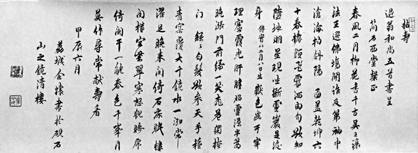 余怀行书《拈寿》,恽寿平《灵岩山图》卷后题跋,故宫博物院藏。