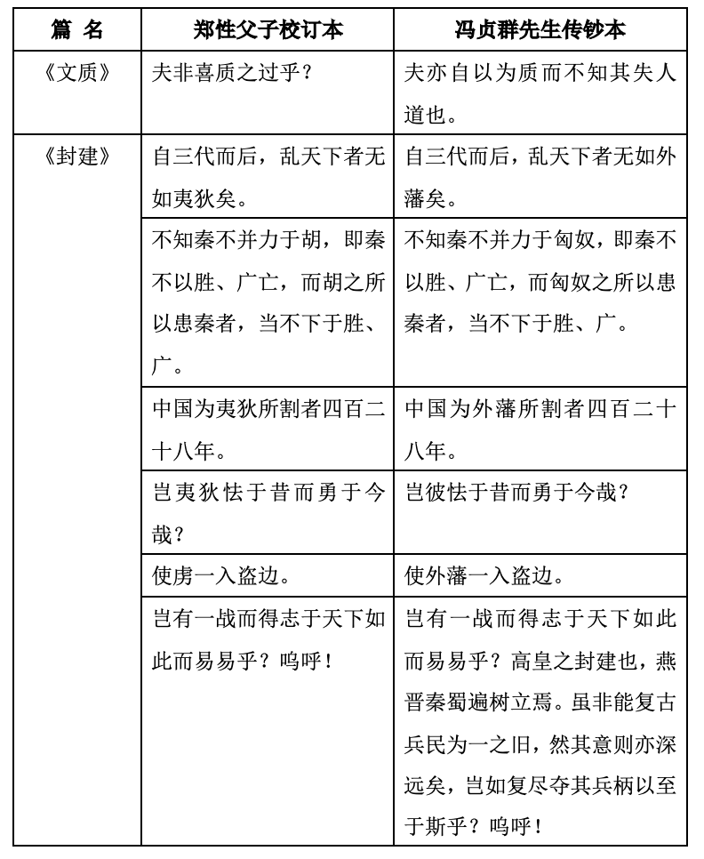 第四页开始为《留书》之正文,共十三页,冯贞群先生将其与郑性父子校订本文字有出入者校出,兹列表以见其异。