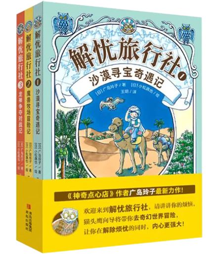 这是一套富有想象力的奇幻冒险故事书。生活中遇到烦恼的主人公,会由“解忧旅行社”安排,在猫头鹰的带领下,踏上不可思议的冒险之旅来解除烦忧,并在旅程中得到锻炼与成长,体会到勇敢承担责任、理解他人、相互帮助的重要性。《沙漠寻宝奇遇记》:大悟冒冒失失喝光了本该全家一起喝的珍贵果汁。为了重现果汁,解忧旅行社安排他去沙漠王国寻找水果。他投靠了贩盐的骆驼商队,每天发挥所长,做饭换取食物和水。机缘巧合之下,他认识了藏于民间的夏尔丹王子,并卷入了巨大的危险之中……《魔兽牧场冒险记》:陆斗不小心打碎了妈妈的精灵摆件,他不敢承担责任,甚至想要“离家出走”。解忧旅行社安排他去魔兽牧场寄宿。他天生热爱动物,每天照顾各种各样稀奇的魔兽,很累但也很高兴,直到他在猫头鹰向导的激将下,打开了塞壬小屋的门……《龙神争夺对战记》:拓真和伸介是很好的朋友,他们一个性子急,擅长运动;一个性子慢,擅长手工。有一天,两人吵了架,都想让对方先给自己道歉。解忧旅行社安排他们去翠星山参加龙神节,去帮助所在的村子获得龙神的帮助,还给他们安排了一对同样性格迥异的双胞胎猫头鹰当向导。究竟谁会获胜呢……