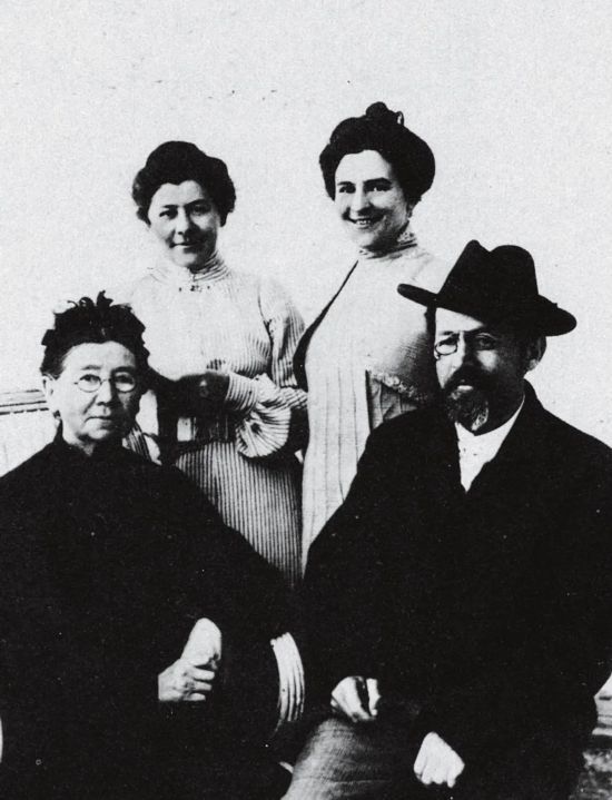 契诃夫与母亲叶甫盖尼娅、妹妹玛丽雅和妻子克尼佩尔,1902年
