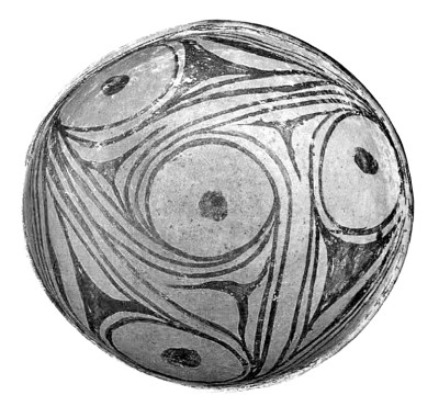 因此,在对称风格上,两河流域彩陶还是和马家窑彩陶呈现出明显的差异。两河流域彩陶是在固定图案的重复中显示旋转,可谓静中显动。旋纹则是依赖弧线自身的张力,再加上它指向不同方向的延伸性来显示对称,可谓动中取静。两种对称风格虽然有差异,但就它们都是在秩序探索上呈现的独特性这点来看,二者是相似的。
