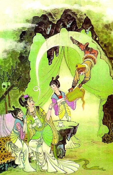 《西游记》中还有不少法宝存在传承和借用的情节,如猪八戒的九齿钉钯、孙悟空的金箍棒都是从太上老君那传承下来的,孙悟空找广目天王借过辟火罩儿,哪吒找真武大帝借用过皂雕旗,观音菩萨找托塔天王借过天罡刀等。这种传承与借用的关系,体现了古人对权力、力量的理解——力量不是个人独占的,而是可以通过社会关系、修为和道德来获得的。这种交往丰富了故事的戏剧性。