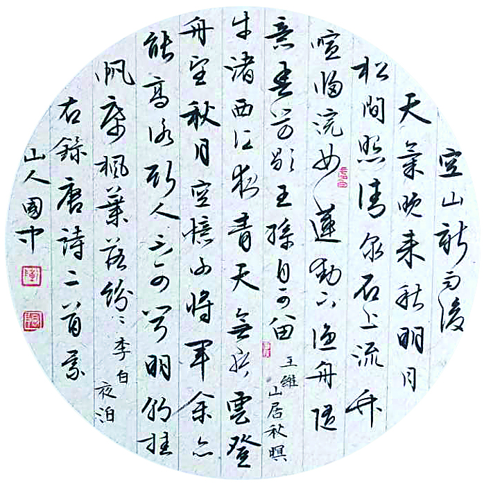 唐诗二首 王维《山居秋暝》 李白《夜泊》 陈国中 书