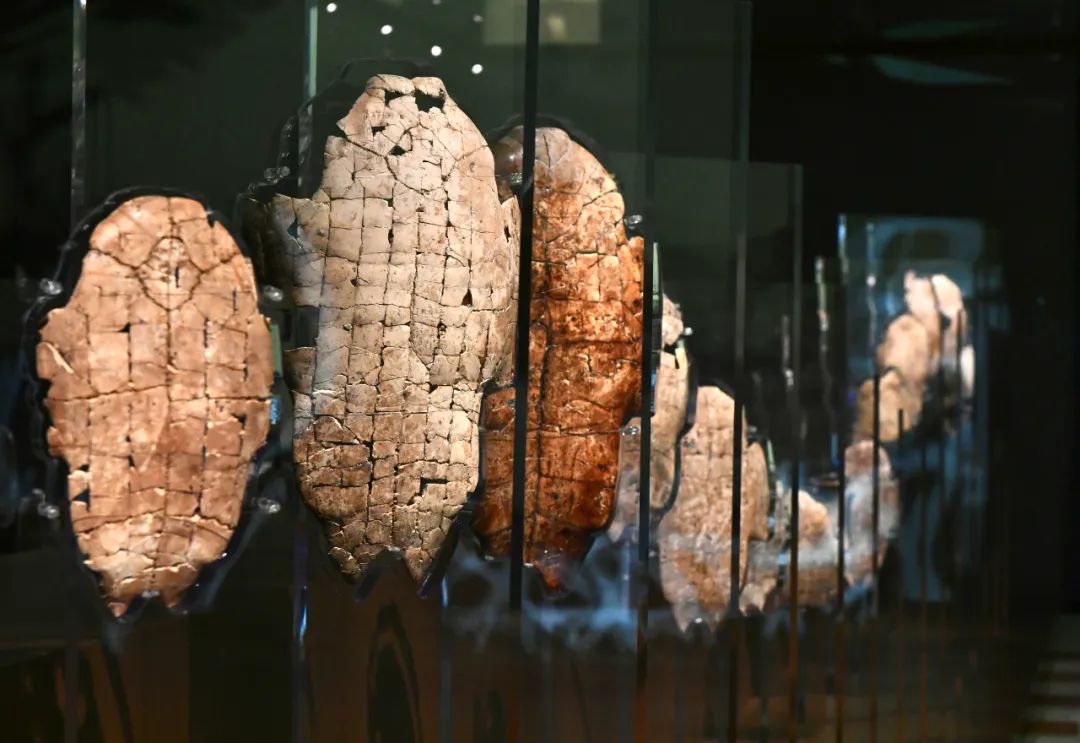 在河南的殷墟博物馆新馆拍摄的考古发掘出土的甲骨文骨片 图源:新华社