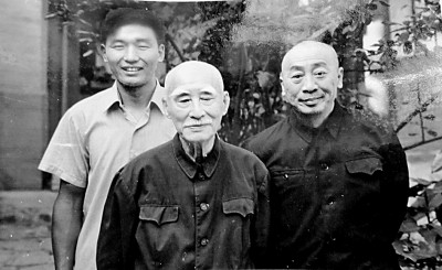 1982年9月,商金林(左)拜访叶圣陶(中)。右为叶圣陶次子叶至诚。作者供图