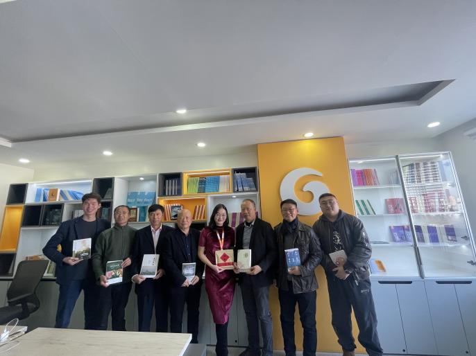 在负责承办蒙古中国文学读者俱乐部活动的光明出版社,光明集团总经理依亲女士转达了俱乐部负责人巴特尔的问候,并向作家们介绍了集团的发展历程,介绍了出版社在译介中国文学方面的成果,如《三国演义》《水浒传》《西游记》《三体》以及正在翻译的《雪山大地》等。依亲女士表示,希望通过出版社和俱乐部平台,能进一步促进中蒙两国人民的理解和友谊。交流期间,作家们向出版社赠送了书籍,期待两国文学互译更加活跃。