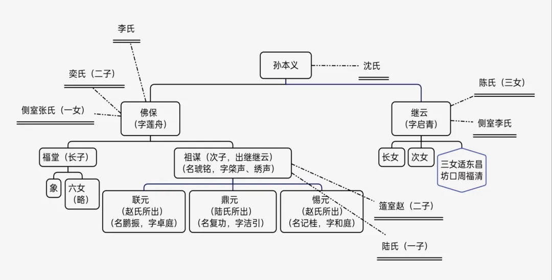 从《绍兴孙氏宗谱》,可以看到孙氏家族相关人物关系(见图2):