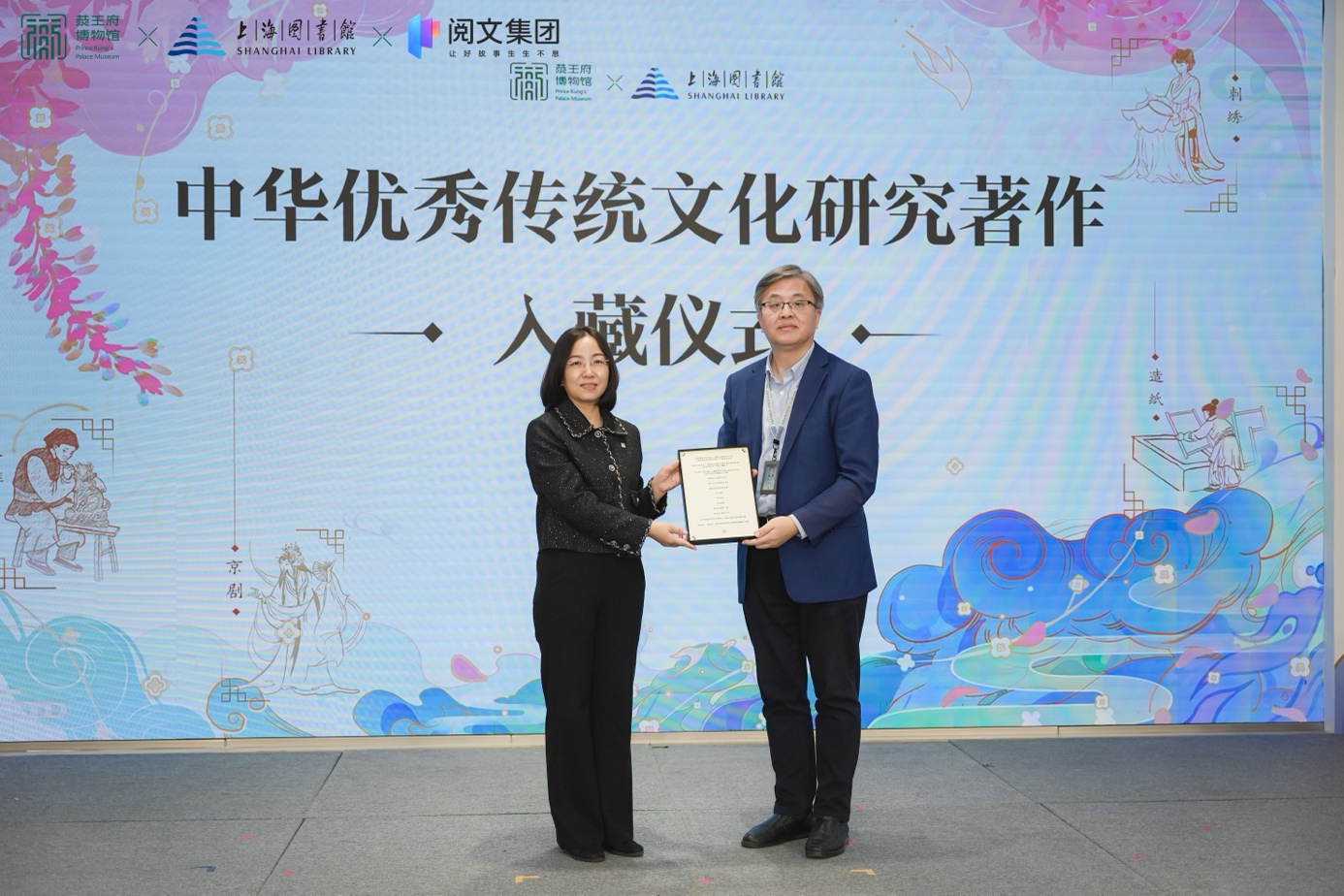 颁奖仪式上同时宣布,“阅见非遗”第三届征文大赛正式启动。24部“阅见非遗”征文大赛优秀作品以及恭王府博物馆关于中华优秀传统文化研究著作及相关文献资料入藏上海图书馆。