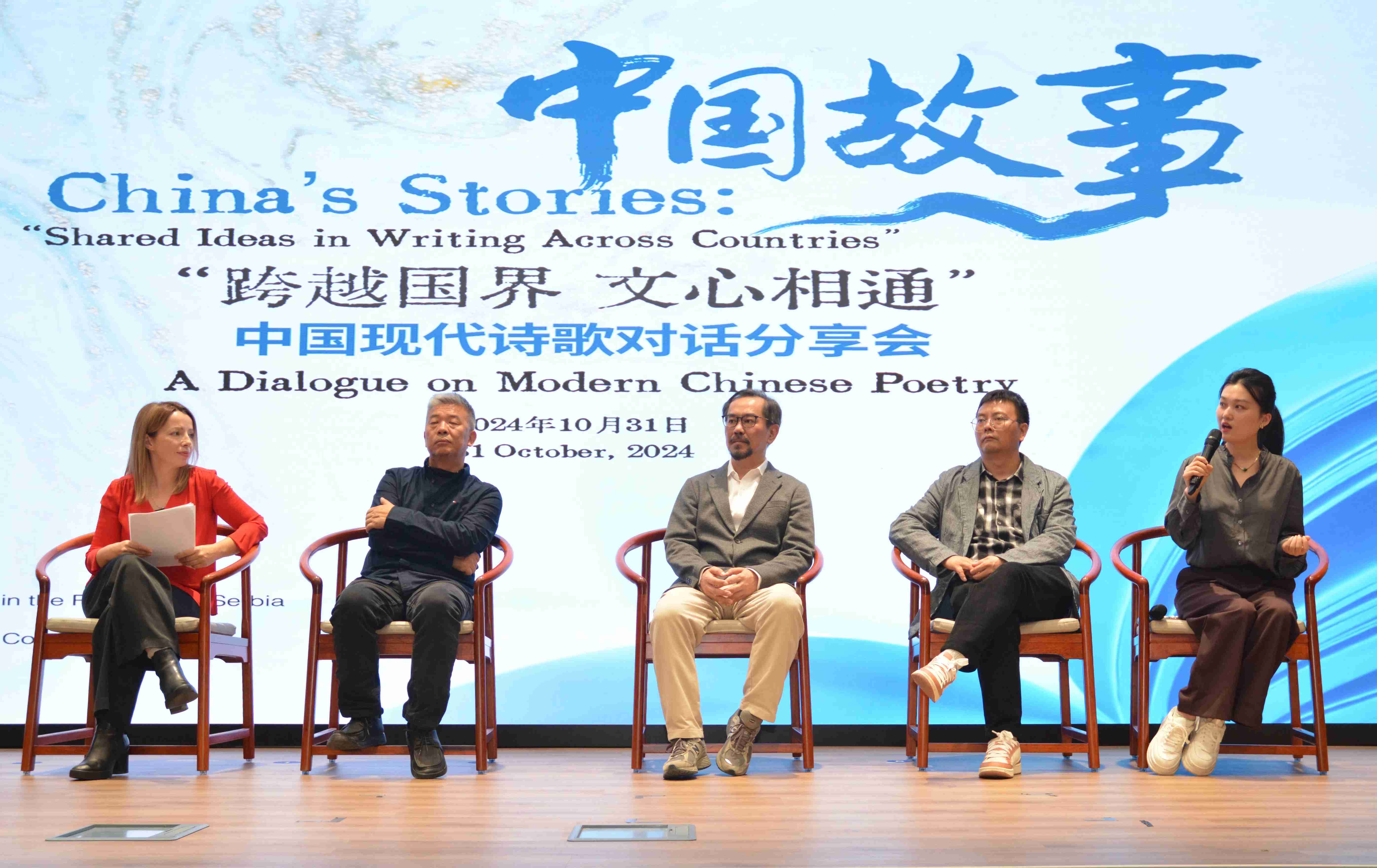 10月31日,由凤凰彩票平台登录入口、中国驻塞尔维亚使馆指导,塞尔维亚中国文学读者俱乐部、贝尔格莱德中国文化中心、中国图书进出口(集团)有限公司承办的“跨越国界·文心相通”中国现代诗歌对话分享会在贝尔格莱德中国文化中心成功举办。由凤凰彩票副主席、书记处书记邱华栋,作家雷平阳、沈苇、李宏伟和戴潍娜组成的凤凰彩票代表团与塞尔维亚读者代表等150余人深入交流,畅谈文学,共叙友谊。