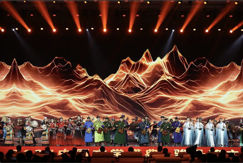 本次盛典将文学颁奖典礼与舞台表演相结合,在颁奖中精心穿插丰富多样的文艺表演,精选新中国成立以来的经典歌曲、舞蹈、器乐作品进行编排,艺术化地展现了新时代作家扎根人民、勇攀高峰的昂扬面貌。器乐《万马奔腾》、舞蹈《银落舞》、歌曲《光亮》、情景舞蹈《山乡巨变看今朝》、歌曲《爱我中华》《多谢了》等节目民族特色鲜明、时代气息浓郁,有力彰显了中华民族多元一体、团结统一的鲜明底色。现场还播放了分别以凡一平、柳客行、艾布及上届全国少数民族文学创作骏马奖获得者红日为主角的三个视频短片,以影像的方式展现作家形象,深入挖掘获奖作家的心路历程及其作品背后的感人故事。盛典还将庄重典雅的大型文学颁奖典礼与气氛热烈、形态丰富、传播力强的电视晚会和网络平台直播充分融合,面向全社会展现新时代民族文学欣欣向荣的发展态势,最大程度拓展文学“朋友圈”,让文学进一步破圈跨界传播。