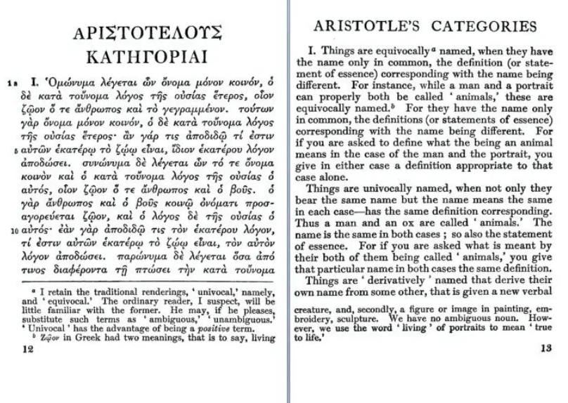 亚里士多德《工具论》之《范畴篇》(“The Loeb Classical Library”)