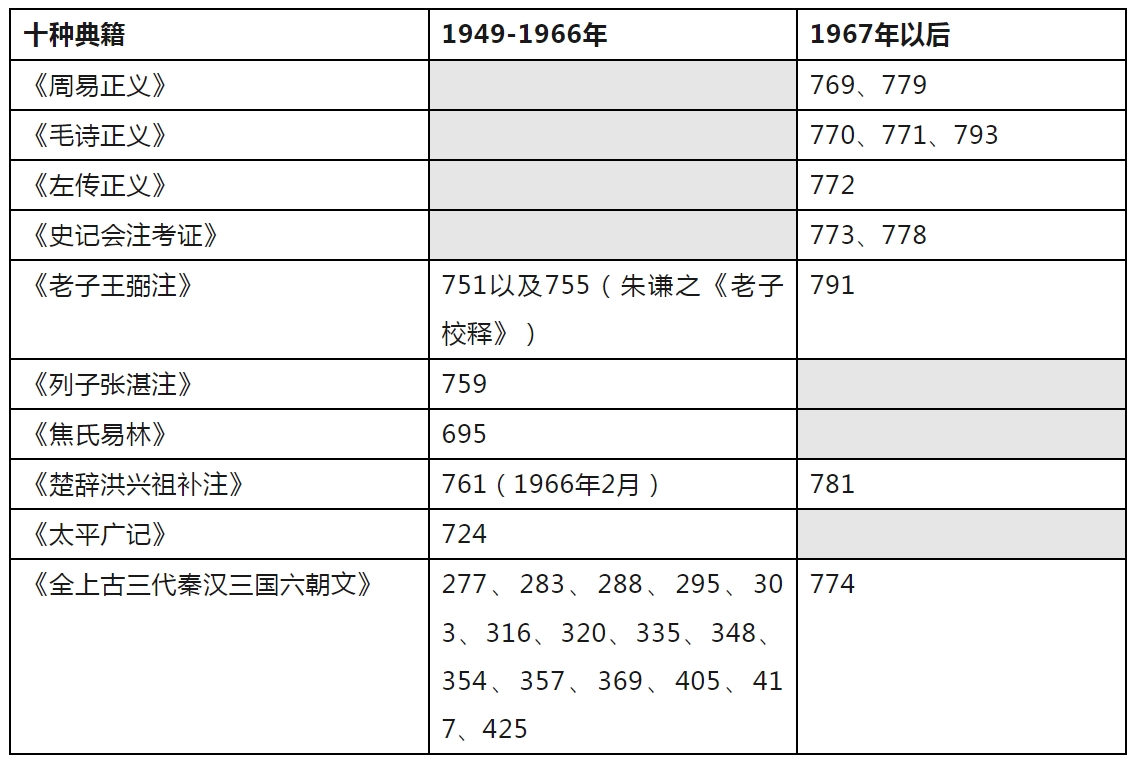 在提出新见解和对旧说进行增补订正的过程中,钱锺书逐渐产生了新的著述想法,就是指1972年3月他从河南干校返回北京后动笔、1979年8月后陆续出版的《管锥编》这部庞大著作。从该书所涉及十种枢纽性质的经典看,《容安馆札记》皆有其草稿,可以下表说明: