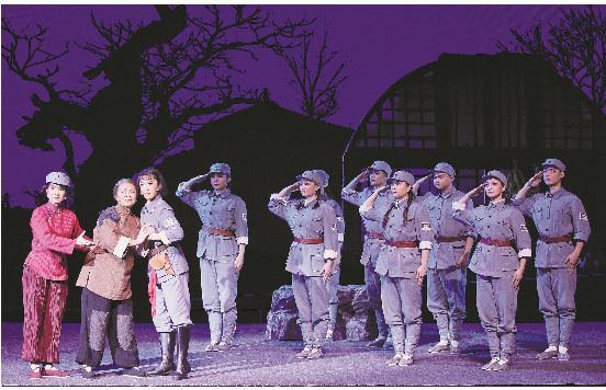 从对人物情感的表达来看,剧作用了相当篇幅书写围绕在李林身边的各种感情:从少小离家时的依依不舍,到牺牲前夕的遥遥牵挂,写出了她和父母间的血脉亲情,凸显了她侨女的特殊身份;还有她与战友间的革命友情以及她与百姓间的鱼水深情。在大虎不幸牺牲之后,李林和大虎母亲刘大娘之间有一段感人的情节安排,一方面写她对自己草率带兵的自责和反思,一方面写刘大娘在丧子之痛中依然给予她宽慰和支持。当大虎的妹妹二妞毅然决定接过哥哥的军帽继续战斗的时候,军民之间的那份深深的信任让人潸然泪下。她和屈健之间的感情是全剧重要的一条感情线。二人从朋友,到有情人,最终结成了夫妻。他们既是战友、恋人,也是残酷战争中彼此生命中的一束光。为了战争的胜利,当他们心照不宣向彼此作最后的告别时,不禁让人想起“生命诚可贵,爱情价更高。若为自由故,两者皆可抛”的革命诗篇。战争无情人有情,以真情写英雄的叙事视角让这位有血有肉的女革命者形象跃然于舞台之上。