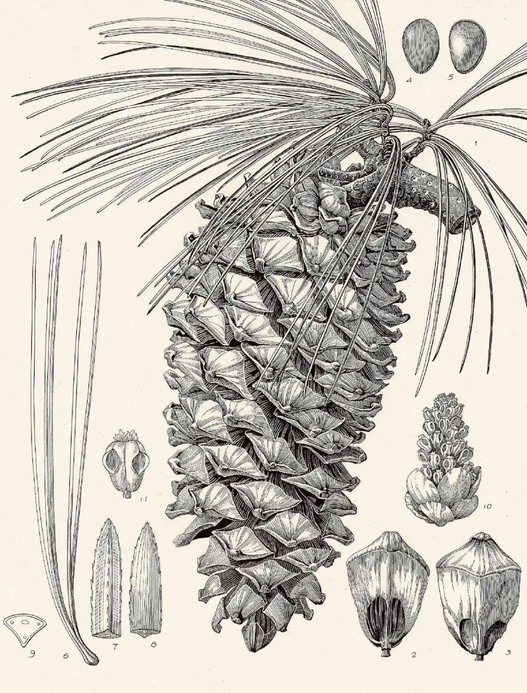 刘华杰:这是个人偏好。黑白线条博物画早期适应于铜版雕版及其复制发展起来,技术相当成熟,应用范围颇广。古典的博物画都尽可能用“排线”表示边界和明暗,这与后来的“打点”方法很不同。前者难度更大,需要事先在头脑中完成某种奇特转换,要有较长时间的专业训练和绘画经验积累才可能做好。排线法绘出的博物画确实有非凡之美,与摄影作品区别也最大。博物画并非越像原物就越好,那些画得极像照片的画,可能并不很好,至少我不喜欢,对于展示对象的核心分类特征也有缺陷。曾先生1975年的《木棉》和1976年的《泡桐》是排线法的经典之作,线条简洁、优美,结构清晰。无论是泡桐果实较暗的表面,还是木棉花较明亮的花瓣,曾先生都用独特的线条表现出来,仔细观赏,令人叹服。排线的设计,需要非凡的“舍象”能力和艺术转换功夫,特别考验创造力。而“打点”法,操作相对直接些,容易学习;当然也需要“建模”,即化简对象,但不像“排线”那样复杂。比较而言,排线法容错率低,打点法容错率高。曾老师的徒弟之一田震琼(花老道)的排线功底也非常好,他的钢笔排线加淡彩作品苍劲有力、几无废笔,看起来硬朗,自然而然“入木三分”。一般意义上的黑白线条图,也适合初学者尝试。