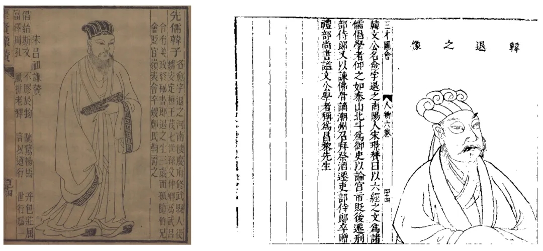 ×óͼΪͼÈý£ºº«Óú£¨È¡×ÔÃ÷´úÂÀάì÷¡¶Ê¥ÏÍÏñÔÞ¡·£©£»ÓÒͼΪͼËÄ£ºº«Óú£¨È¡×ÔÃ÷´úÍõÛß¡¶Èý²Åͼ»á¡·£©