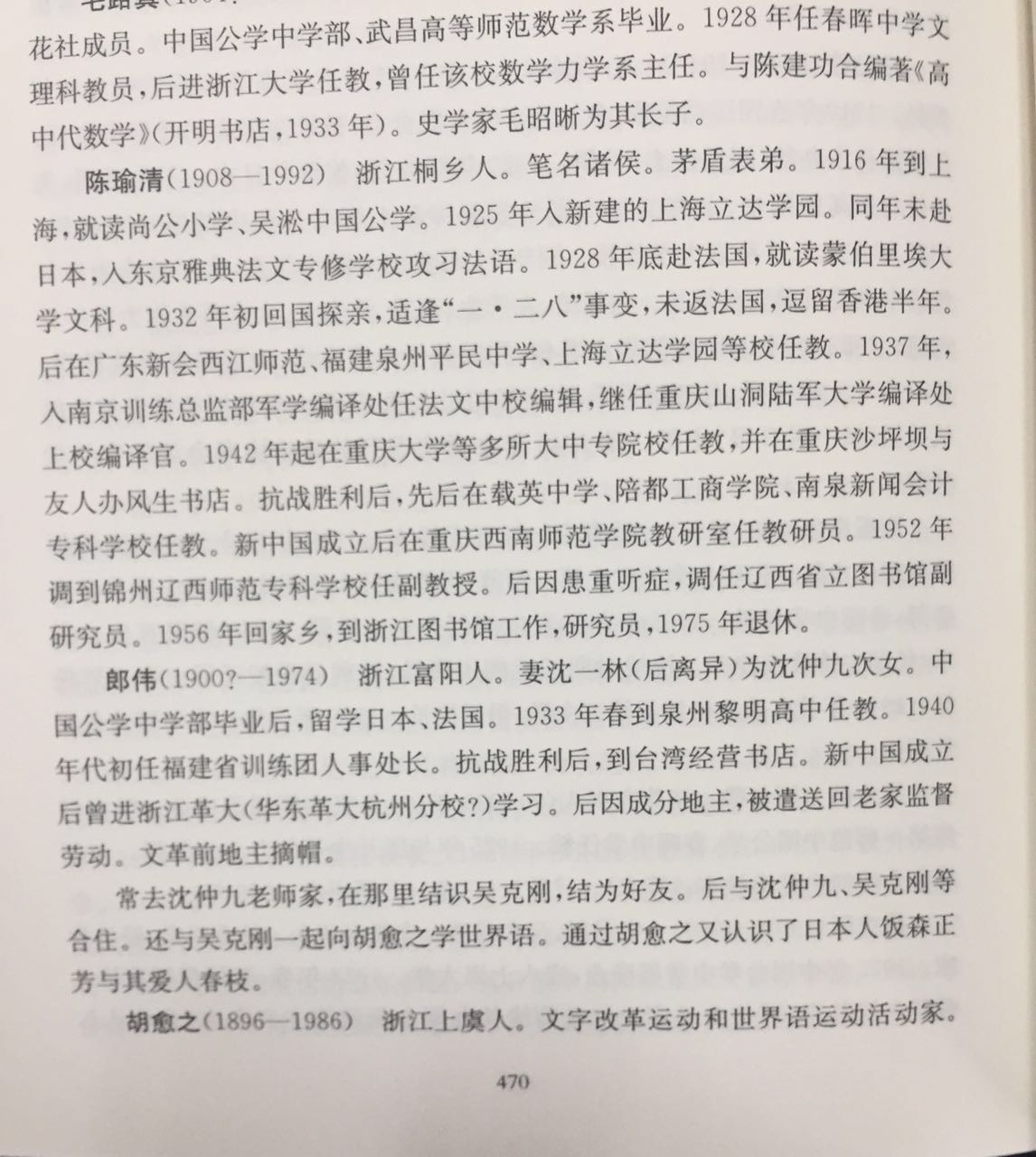 “在《黄源回忆录》里提到1929年的吴朗西:‘陈瑜清到法国去后,我就搬到吴朗西和郎伟的住所。郎伟是富阳人。吴朗西在上智大学读德国文学,他们楼上住的是张易,他在高等师范学院读英文系。吴、郎两位白天到学校,晚上回来做饭吃。’(郎伟后来与沈仲九女儿结了婚)