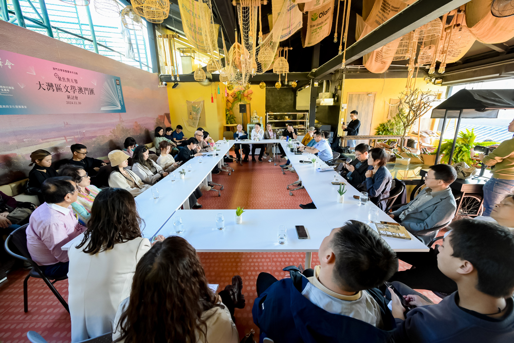 “聚焦与互鉴:大湾区文学澳门汇”研讨会于下午在大三巴牌坊旁的澳门酒荟天台举行,由澳门笔会理事长廖子馨主持。