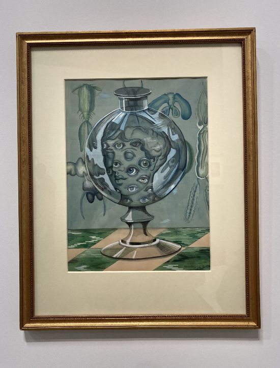 展览展出的二百五十件作品涵盖了绘画、电影、摄影以及重要文献。画作中有来自世界各大美术馆藏品中超现实主义画派代表人物的知名作品,比如达利的油画《伟大自慰者的脸庞》(Visage du grand masturbateur, 1929),玛格丽特的《个人价值》(Les valeurs personnelles, 1952), 意大利画家乔治·德·基里科(Giorgio de Chirico, 1888-1978)的《孩子的大脑》(Le cerveau de l’enfant, 1914) 与《爱之歌》(Le Chant d’amour, 1914), 德国画家马克斯·恩斯特(Max Ernst, 1891-1976)的《大森林》(Le grand forêt, 1927),米罗(Joan Miró, 1893-1983)的知名画作《吠月之犬》(Chien aboyant à la lune, 1926)。除了这些明星艺术家之外,在本次展览中能看到更多超现实主义派女艺术家的作品。其中有一些已小有名声:朵拉·玛尔,摄影家李·米勒(Lee Miller, 1907-1977),英国女画家利奥诺拉·卡林顿(Leonora Carrington, 1917-2011), 法国先锋摄影家克劳德·卡恩(Claude Cahun, 1894-1954), 德国艺术家梅拉·奥本海姆(Meret Oppenheim, 1913-1985),以及捷克超现实主义团体创始人及代表性人物女画家托伊恩(Toyen, 1902-1980)。另一些至今依然鲜为大众所知的女艺术家的作品也得到了呈现,比如英国超现实主义先锋画家伊赛尔·科尔库洪(Ithell Colquhoun, 1906-1988),法籍匈牙利画家朱迪特·雷格尔(Judit Reigl, 1923-2020), 意大利画家莱昂诺尔·菲妮(Leonor Fini, 1907-1996), 墨西哥西班牙裔画家瑞梅迪奥斯·瓦罗(Remedios Varo, 1908-1963), 美国超现实主义派女画家海伦·伦德伯格(Helen Lundeberg, 1908-1999), 加拿大魁北克艺术家米米·帕伦特 (Mimi Parent,1924-2005),法国艺术家亚内·勒·图梅兰(Yahne Le Toumelin,1903-2023), 英国艺术家及精神学家格蕾丝·帕尔索普(Grace Pailthorpe, 1883-1971),还有难得一见法籍埃及诗人乔伊斯·曼苏尔(Joyce Mansour, 1928-1986)……