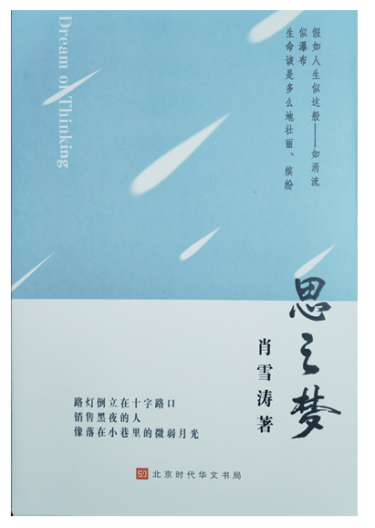 《思之梦》是安徽诗人肖雪涛继2023年8月第一部诗集《半途》出版后的第二部诗集。它收录了作者2022年6月至2023年9月所写作的177首作品,分为《人生感悟》《岁月缤纷》《激情燃烧》三辑。这部诗集,从多方面显现出作者既“写情”又“写事”,是对情与事的回忆、回望、回味。所用来“回溯”的方法则是“实写”与“虚写”相结合,以细节为载体,实中有虚、虚中见实。记录下人生旅途的点点滴滴,留下了类似于“生活日志”的大量诗歌。
