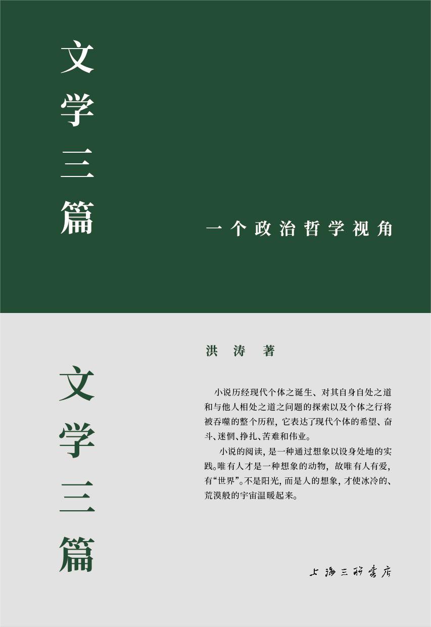 《文学三篇:一个政治哲学视角》,洪涛著,上海三联书店2024年6月出版,501页,98.00元
