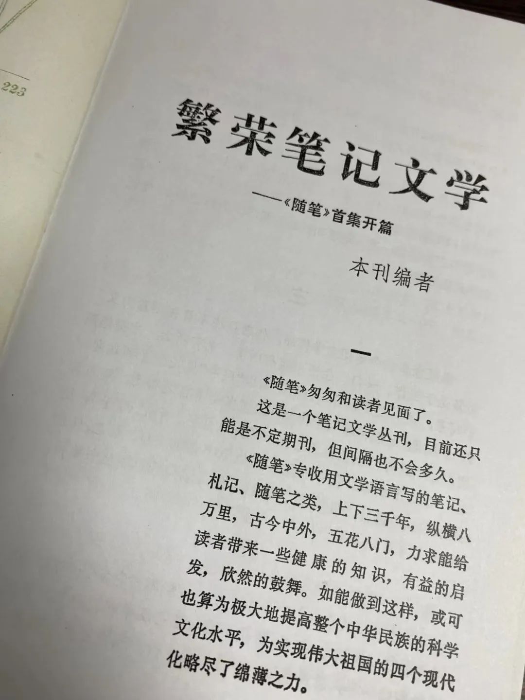 一九七九年六月,《随笔》第一册出版了,虽然号称“小众”,首印也有四万八千册,在当年不算惊人,但今天看来,这个“众”不小了。由于大受欢迎,《随笔》与《花城》同样一册难求,以至分发到各编辑部的样刊一再丢失,易征忍无可忍,在样刊上怒写了几行字:“随笔雅俗共赏,随便翻翻可以,随意拿去不行,随手放回原处!”但一连四个“随”字,也挡不住“窃书不算偷”的“雅贼”,最后连这本写了警告字样的样刊也不见了。