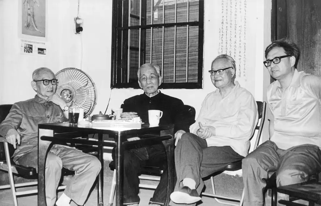 1980年,商承祚、容庚、沈从文、苏晨(左起)聚于苏晨家