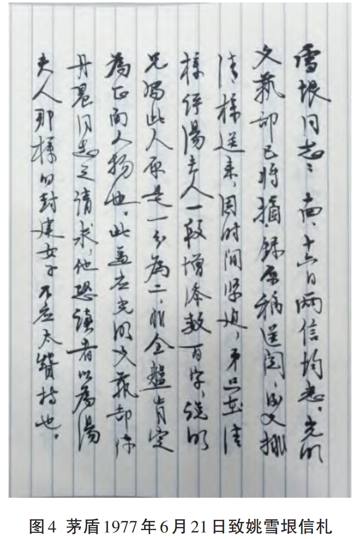 这就不得不说到有关对“新时期文学”这一文学史概念的认识。“新时期文学”作为一个特殊的、中国当代文学史概念,它的起讫到底是从1976年10月宣布文革结束就算起,还是迟至1978年党的十一届三中全会顺利召开为起点,这对于学界重新理解1976-1978年提供了学理的理解维度。如果按当前的学界认识从1978年12月党的十一届三中全会召开算起,至少它不能真正有效地建构、阐释1976年至1977年这一历史时段的复杂性。这就进一步说明,1976年、1977年和1978年的历史纠葛,有待学界重新展开认识和确认,更有待学界把它们作为独特的研究对象来予以审视。正是在这个意义上,学界更应看重茅盾在信札里不断提到的“义不容辞”这个词背后所蕴含的时代含义。尽管年事已高,尽管身体有着这样或那样的毛病,但作为老一代健在的新文学家,茅盾理解了自己在这一历史时段应有的责任和担当,他也才能够不断地说服如此高龄的自己走在时代的潮流里,并努力推着这股潮流向前走。