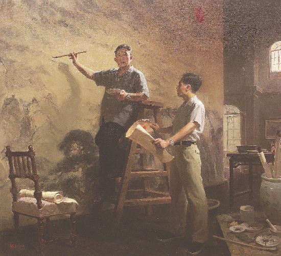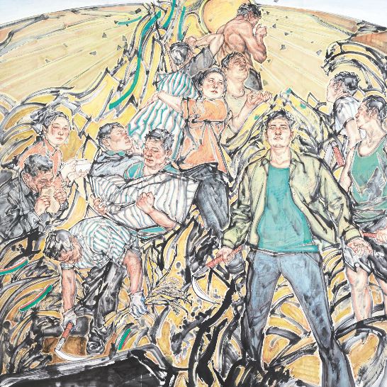 如果以进京作品展作为此届全国美展的艺术水准刻度,还是颇令人欣慰和惊喜的。在中国美术馆中央圆厅的正中,观众可以看到表现富有新时代农民精神特质的作品《暖》和《金色土地》。李传真与吴筱蘅合作的工笔重彩《暖》刻画细致,展现了当代工笔画多材料介入形成的深入塑造能力;沈晓明的写意人物《金色土地》,试图在造型的生动性与笔墨的写意性之间构成的一种表现语言的平衡。从前者画面中农民工在城里欢度中秋节并与远方村里孩子们视频联线的场景所反映的当代农民工生活质量的提升,到后者表现收获季节农民工再度返乡收割的景象所营造的金色土地意象,两幅画作包含了丰富而深刻的图像母题的社会学内涵。近年来,大型主题性创作项目也深度影响了当代美术的创作理念,李前的油画《工人是“天”》所建构的李大钊在北京长辛店传播革命思想的历史图景,展现了历史画如何发掘素材还原历史真实的艺术创造性;而孙妍的雕塑《同唱》以浪漫主义情怀塑造出一群女文工团团员,让人们感受到革命战争年代文艺工作者满怀青春斗志。不论是历史人物还是无名战士,这些历史题材创作通过人物形象刻画所体现的主题立意无不具有激发人们继续奋斗的艺术感染力。历史画从来都不完全是对历史片段的客观复制,而总是以当代视角赋予其鲜活的现实形态。因此,视觉新质并非只是视觉感观的新锐,而是对视觉背后深掩的思想矿藏的发掘。