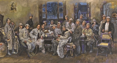 有别于以原色为主的欧洲古典油画,沈尧伊的《遵义会议》特意减弱画面色彩饱和度来还原会议朴素、真实的场景,既忠实于历史,又烘托出深沉凝重的气氛。这件作品不仅填补了革命历史题材美术创作的空白,更为党史研究贡献了珍贵图像资料,也为其他同题材美术创作提供了重要参照和启示——既要深入探寻与研究历史真相,也要不断完善和探索主题的最佳表现方式。创作者要将自己置身于历史情境之中,用心体悟每一个人物的造型与精神面貌,以超凡的艺术感受力与通感力再现中国革命历史。