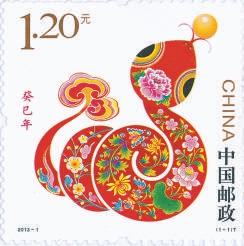 新中国邮票史上的第一轮生肖邮票,是从1980年的“庚申猴年”开始的。到了“蛇年”,中国邮政发行了《己巳年》特种邮票。在画面中,一条金色的蛇蜿蜒成圆,它的身体缠绕着牡丹、荷花、菊花和梅花等四季之花,呈现出岁月流转之感。这条蛇口含灵芝,从而减少了人们对蛇的本能畏惧,且增添了健康长寿的寓意。时间荏苒,如今,作为第四轮蛇生肖邮票的《乙巳年》问世了。这几轮的蛇生肖邮票,均寓意祥云普照、好运长久、福纳百祥。
