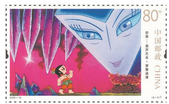 除了白素贞外,动漫中的蛇,也就是呈现于孩子们眼中的蛇,也是可爱的。2020年发行的动漫邮票《葫芦兄弟》,就有很多“蛇精”形象。