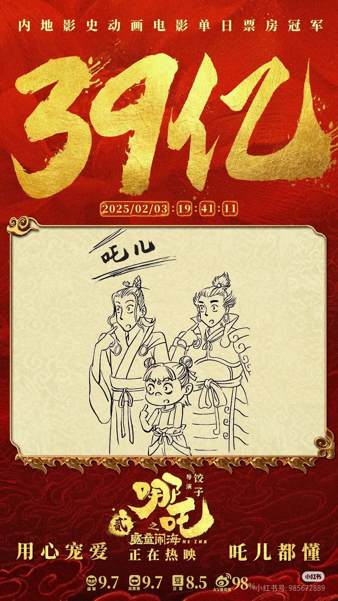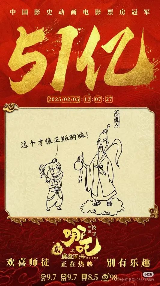 电影《哪吒之魔童闹海》登顶中国影史票房冠军海报